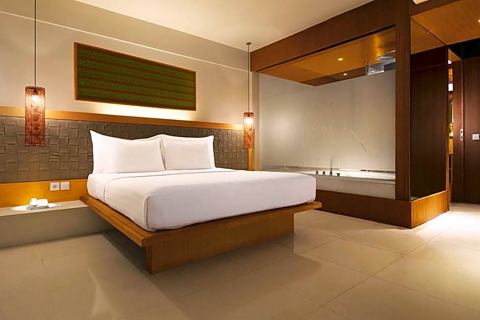 Featuring a unique minimalist design, this spacious and air-conditioned suite comes with a well-equipped kitchenette, separate living area with flat-screen cable TV, and an iPod dock. The bedroom is beautifully furnished with a comfortable bed, a wardrobe, personal safe, and an private bathroom which has bath and shower facilities, slippers, bathrobes, and free toiletries.