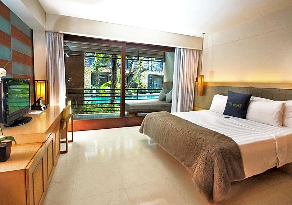 Featuring a unique minimalist design, this modern room comes with flat screen cable TV, coffee/tea maker. The bedroom is beautifully furnished with plush queen or twin beds with interconnecting access on some rooms. Confirmation subject to availability. The private bathroom has shower or bathtub. The room has a balcony overlooking the pool. Please note that this room cannot accommodate extra beds and only 1 child is allowed to share existing bed with the parents.